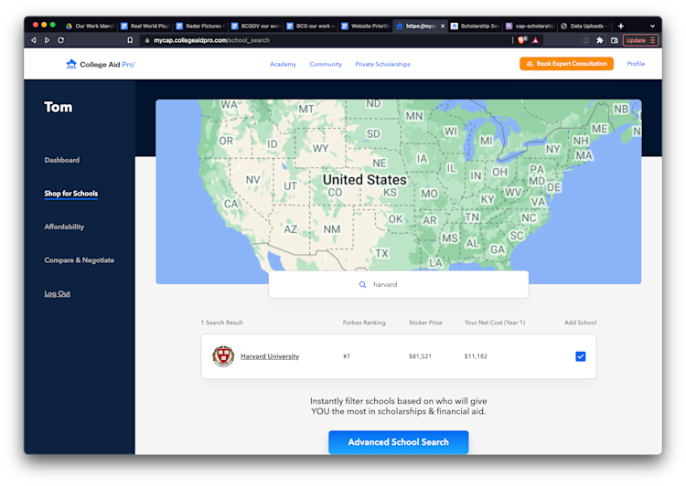 Future Foundry’s initial work with College Aid Pro was building an efficient, searchable database infrastructure for sharing scholarship resources amongst advisors.